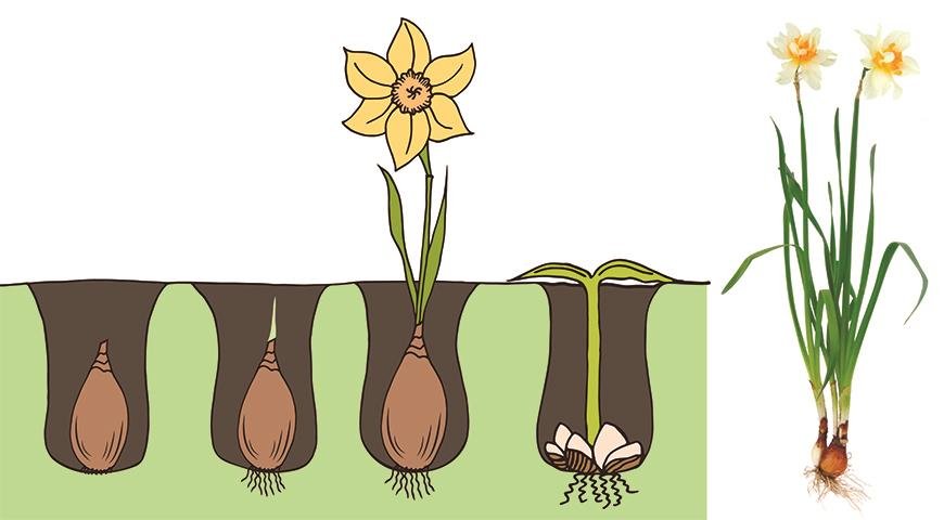 Narcizų, kaip ir kitų svogūninių augalų, tiesiai į dirvą sodinti nerekomenduojama. Svogūnėlius reikėtų izoliuoti nuo dirvos smėliu: drėgna dirva, prilipusi prie svogūnėlio, gali sukelti jo puvimą. Kad to išvengtumėte, po svogūnėlio dugnu patariama užpilti 2 cm storio stambaus upinio smėlio sluoksnį. Išdėliokite svogūnėlius ir užberkite juos smėliu. Po to užpilkite vagas dirvožemiu.