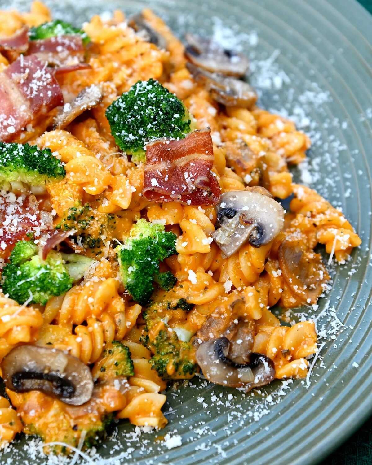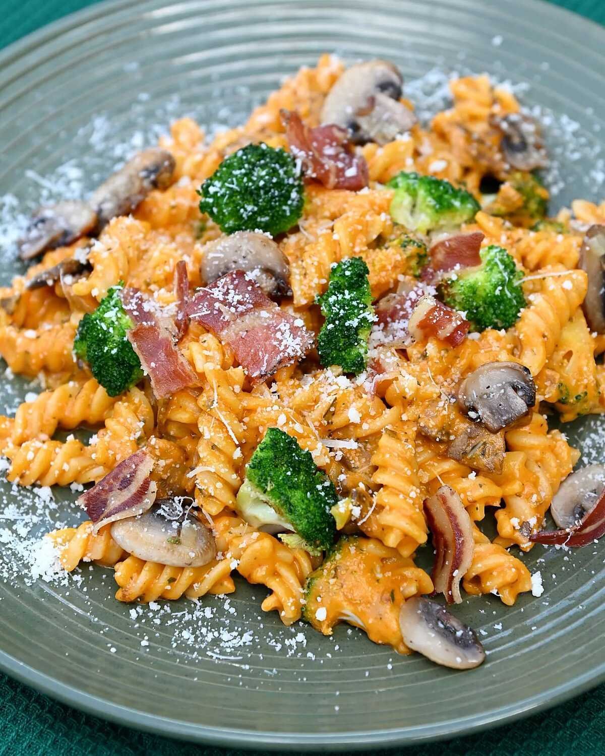 Šis receptas puikiai tiks žvarbiais vakarais, kai tingisi gaminti, bet norisi skanios vakarienės greitai ir daug laiko nepraleidžiant virtuvėje! Labai mėgstu makaronų patiekalus, galėčiau juos valgyti kas dieną. Dažnai ekspermentuoju su skoniais, likau sužavėta šia savo improvizacija tai nesprendžiau pasidalinti su receptu ir su jum. Galite drąsiai ekspermentuoti su daržovėmis, taip kas kartą sukurdami naujus skonius.