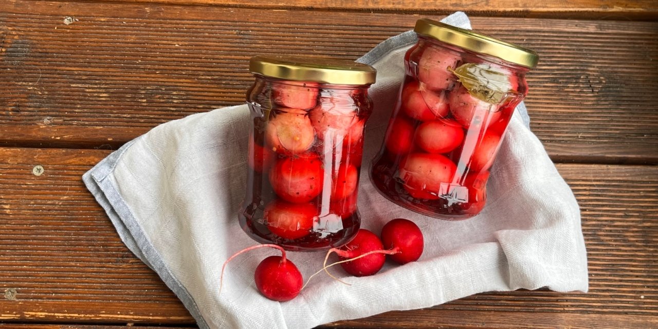 Neįprastas daržovių konservavimo būdas. Galite valgyti iškart arba pasilikti žiemai. Įprastas ridikėlių aštrumas ir intensyvumas virsta pikantišku saldžiarūgščiu skoniu su lengvomis natomis. Tuo pačiu ridikėliai išlieka traškūs.