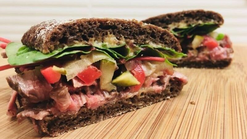 Sumuštinis su jautiena tobulas užkandis, ypač jeigu iš vakaro išsikepate lėtai keptą jautienos nugarinę ir jos lieka kitai dienai. Tai puikiausias sumuštinis vaikui į mokyklą, tau į darbą ar tiesiog, kai norisi kažko tokio sumuštiniško užkrimsti.