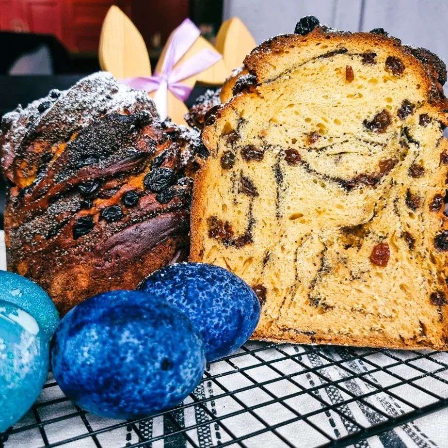Puikus minkštas pyragas, kuris tradiciškai kepamas šv. Velykų stalui. Įprastai šio pyrago tešla sudaryta iš kiaušinių, miltų, mielių, sviesto ir razinų. Na o aš dar pagardinau aguonomis.